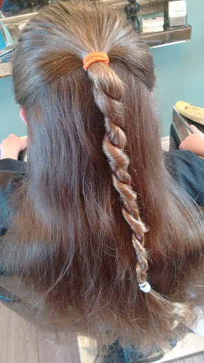 Now I have a daughter with long hair, who loves to have it played with and plaited. She has also seen people with hairdos that she’d like, and asked me for them.